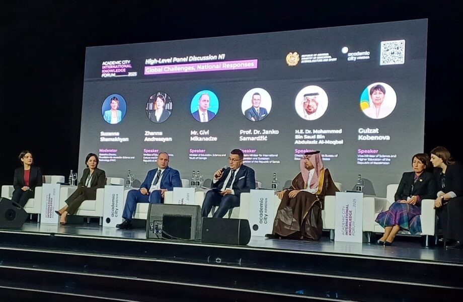 Делегација Министарства просвете, коју чине државни секретар др Јасмин Хоџић и помоћник министра за међународну сарадњу проф. др Јанко Самарџић учествује на конференцији „Академски град Јерменија: Међународни форум знања“, која се одржава од 19 до 22. октобра 2025.године у Јеревану, Република Јерменија.